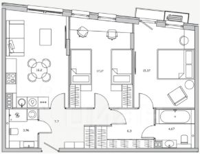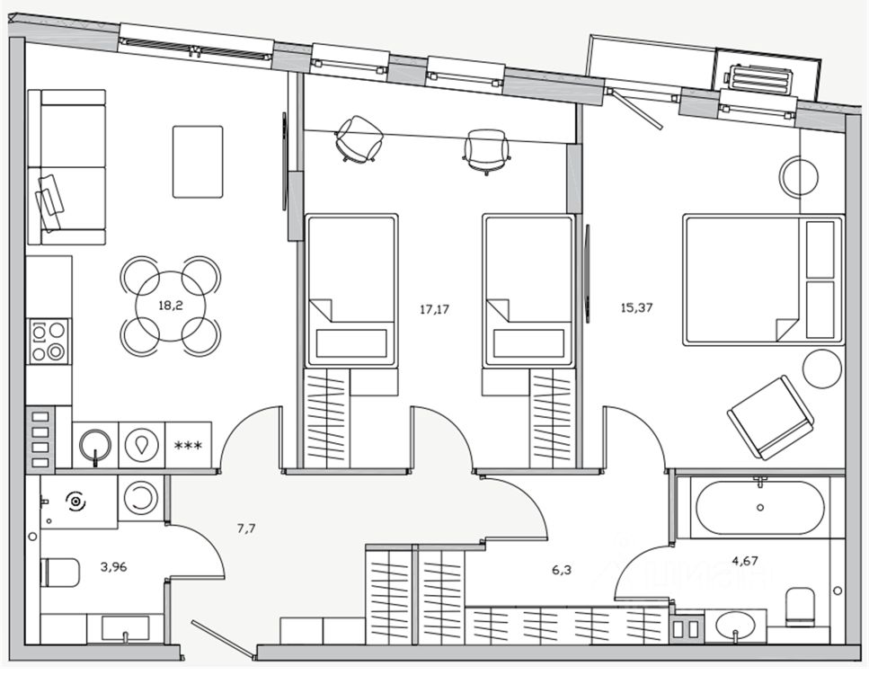 Квартира без отделки в сданном клубном доме "Эльйон" в Одинцовском районе. Свободная планировка. Просторная площадь квартиры с большими окнами и высотой потолка 3,1 м.