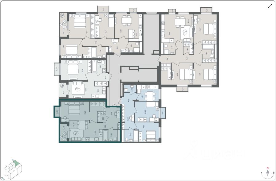 Продаётся квартира с 2 комнатами общей площадью 45.40 кв. метров на 2 этаже жилого квартала комфорт-класса "Равновесие".
