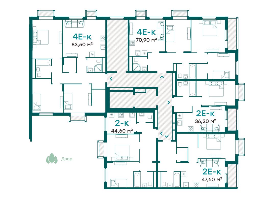 Продаётся квартира с 4 комнатами общей площадью 81.70 кв. метров на 4 этаже жилого квартала комфорт-класса "Равновесие".