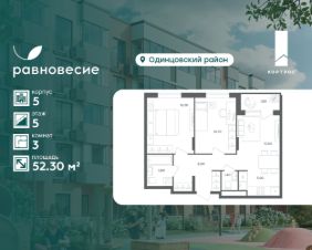 Продаётся квартира с 3 комнатами общей площадью 52.30 кв. метров на 5 этаже жилого квартала комфорт-класса "Равновесие".