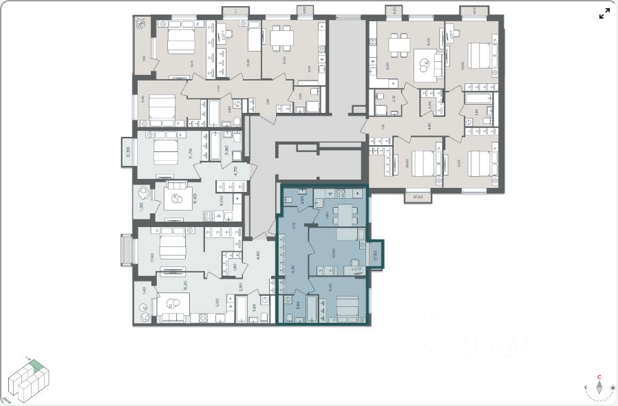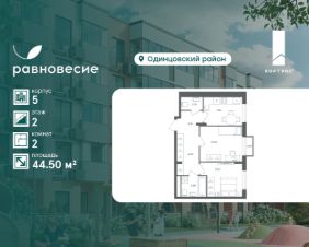 Продаётся квартира с 2 комнатами общей площадью 44.50 кв. метров на 2 этаже жилого квартала комфорт-класса "Равновесие".