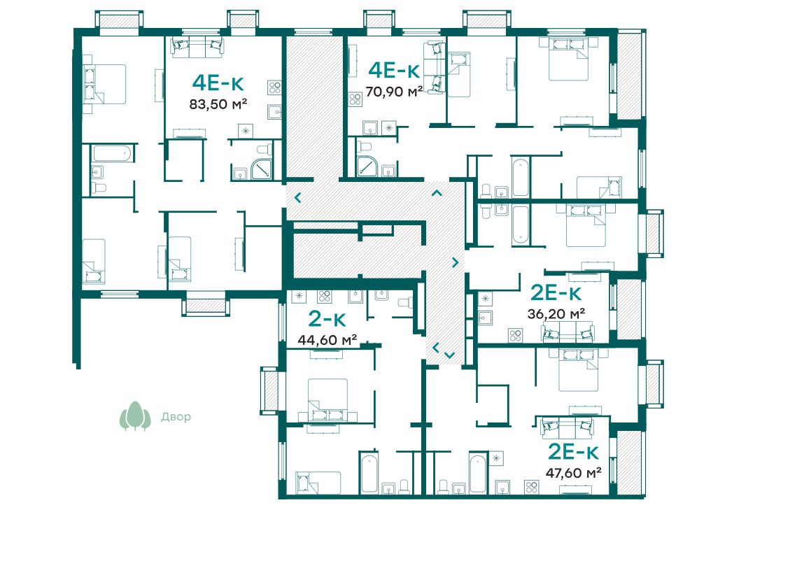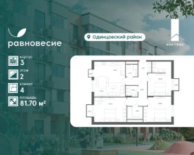 Продаётся квартира с 4 комнатами общей площадью 81.70 кв. метров на 2 этаже жилого квартала комфорт-класса "Равновесие".