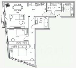 Квартира без отделки в сданном клубном доме "Эльйон" в Одинцовском районе. Свободная планировка. Просторная площадь квартиры с большими окнами и высотой потолка 3,1 м.
