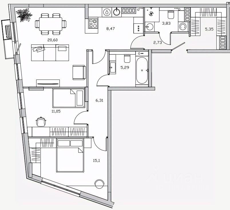 Квартира без отделки в сданном клубном доме "Эльйон" в Одинцовском районе. Свободная планировка. Просторная площадь квартиры с большими окнами и высотой потолка 3,1 м.