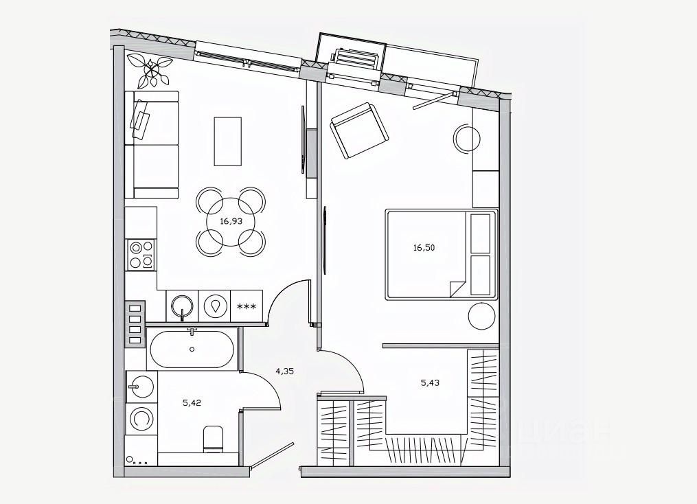 Прямая продажа от застройщика! Продаётся 1-комнатная квартира общей площадью 48,8 кв.м на 3-м этаже 4 этажного дома. Дом сдан.