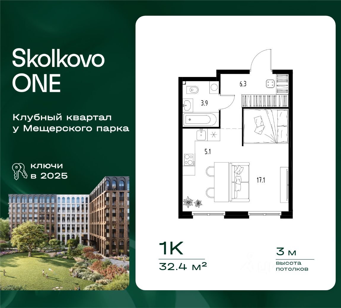 Квартира в корпусе 6 | 32,4 м² | 2 этаж из 9 | Дом сдан