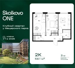 Квартира в корпусе 5 | 58,1 м² | 8 этаж из 9 | Срок сдачи — III кв. 2025 года