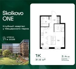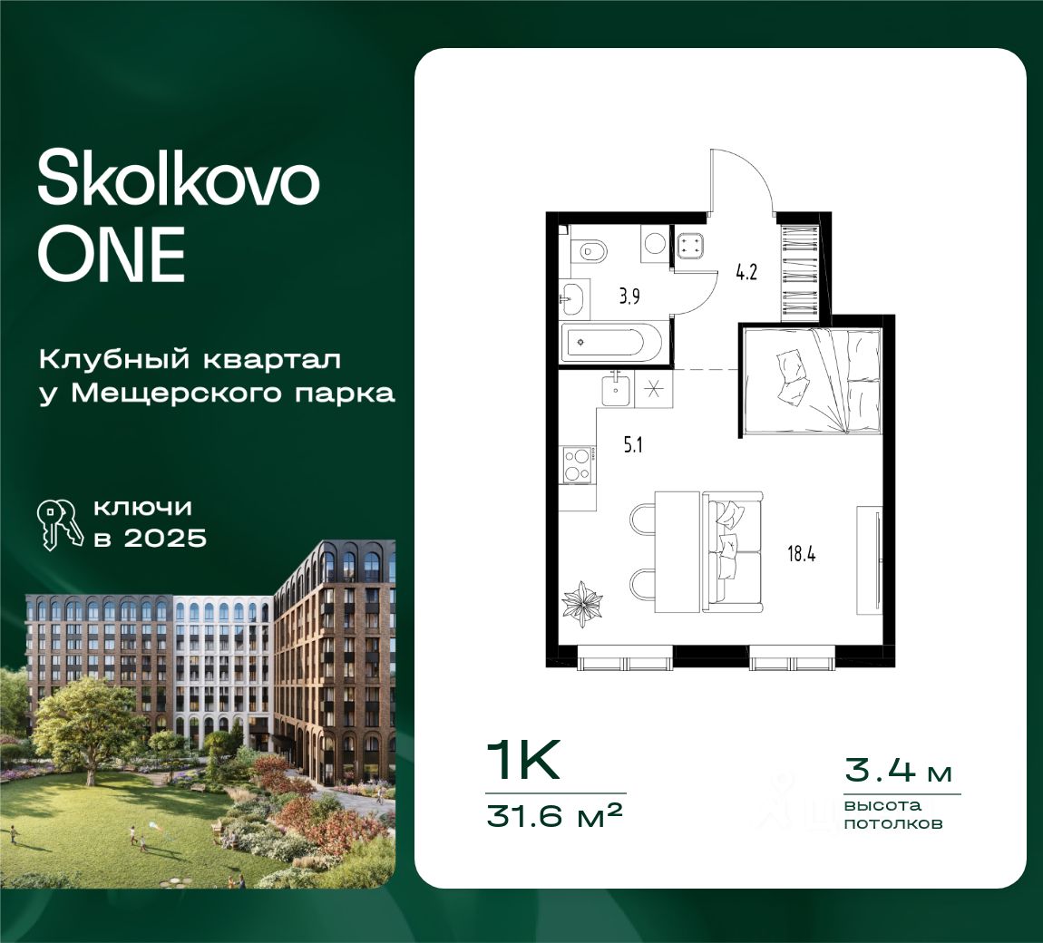 Квартира в корпусе 5 | 31,6 м² | 9 этаж из 9 | Срок сдачи — III кв. 2025 года