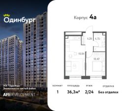 Предлагаем вашему вниманию уютную 1-комнатную квартиру общей площадью 36,3 кв.м на 2 этаже в новой очереди строительства ЖК "Одинбург". Этот обновленный проект от компании AFI Development включает в себя актуальные архитектурные решения и функциональные планировки. Для всех действует предложение от застройщика Назови свою скидку, подробности акции уточняйте у менеджеров отдела продаж.
