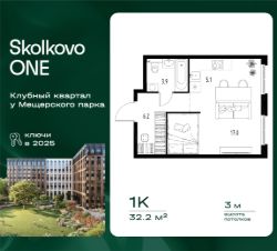 Квартира в корпусе 6 | 32,2 м² | 8 этаж из 9 | Срок сдачи — III кв. 2025 года