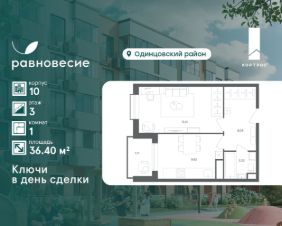 Продаётся квартира с 1 комнатой общей площадью 36.40 кв. метров на 3 этаже жилого квартала комфорт-класса "Равновесие".
