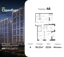 Предлагаем вашему вниманию уютную 4-комнатную квартиру общей площадью 83,22 кв.м на 22 этаже в новой очереди строительства ЖК "Одинбург". Этот обновленный проект от компании AFI Development включает в себя актуальные архитектурные решения и функциональные планировки. Для всех действует предложение от застройщика Назови свою скидку, подробности акции уточняйте у менеджеров отдела продаж.