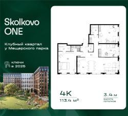 Квартира в корпусе 4 | 113,4 м² | 9 этаж из 9 | Дом сдан