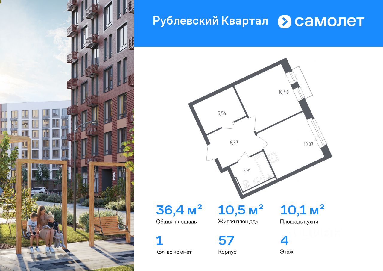 Строим кварталы для жизни с заботой о будущем. Предлагается 1-комнатная квартира комфорт-класса 36,35 кв.м в корпусе 57 на 4 этаже, в ЖК "Рублевский Квартал"
