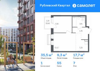 Предлагается 1-комнатная квартира комфорт-класса 35,54 кв.м в корпусе 55 на 7 этаже, в ЖК "Рублевский Квартал"