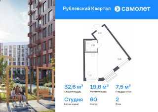 Предлагается квартира студия комфорт-класса 32,58 кв.м в корпусе 60 на 2 этаже, в ЖК "Рублевский Квартал"