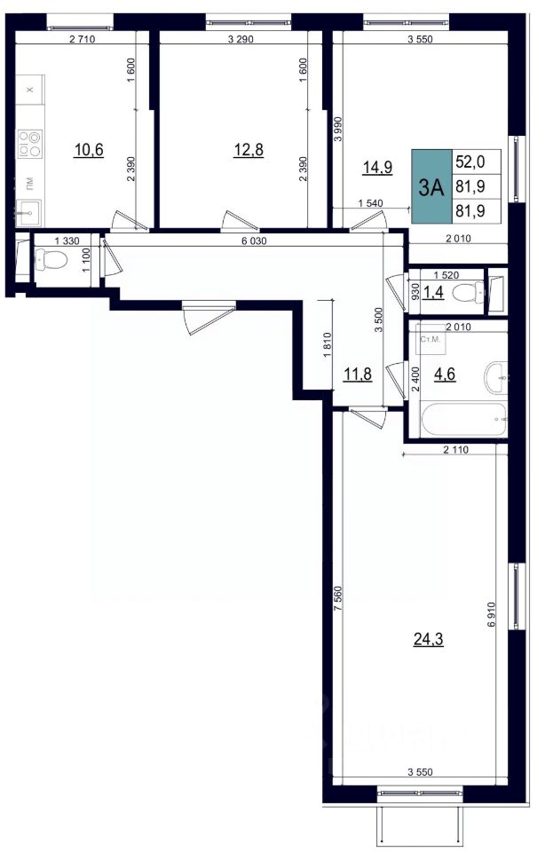 Продаётся 3-комнатная квартира в строящемся доме (Дом 1), срок сдачи: III-кв. 2026, общей площадью 81.9 кв.м., на 2 этаже. Новый жилой дом от застройщика "Атлантис Скай Сити" расположен по адресу Московская область, Одинцовский район, г. Одинцово, микрорайон 6 - 6А
