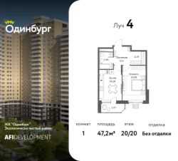 Предлагаем вашему вниманию уютную 1-комнатную квартиру общей площадью 47,2 кв.м на 20 этаже в новой очереди строительства ЖК "Одинбург". Этот обновленный проект от компании AFI Development включает в себя актуальные архитектурные решения и функциональные планировки. Для всех действует предложение от застройщика Назови свою скидку, подробности акции уточняйте у менеджеров отдела продаж.