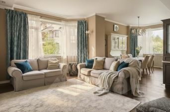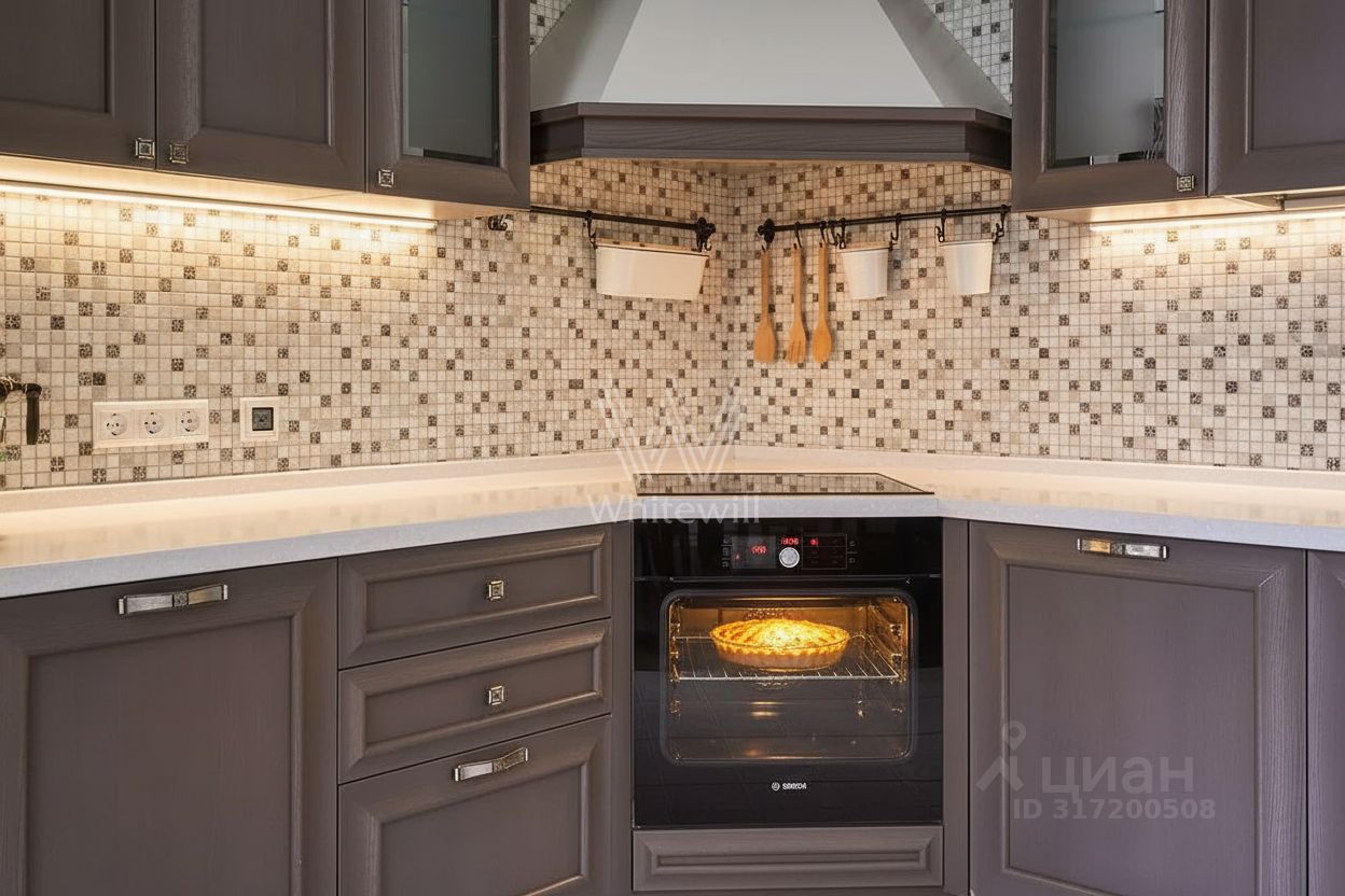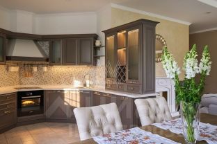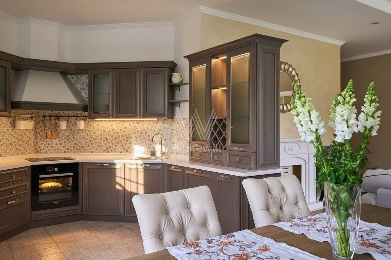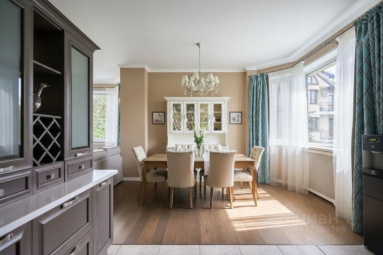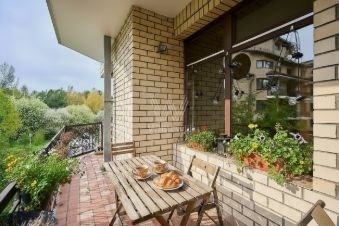 Квартира с тремя спальнями в загородном малоэтажном комплексе у мещерского парка. Выполнена отделка в стиле Прованс, что подчеркивает обильная зелень за окнами.