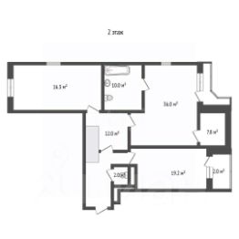 2 этаж: прихожая с выходом в подъезд, 2 просторные комнаты, гардероб, библиотека, кухня, лоджия, 2 санузла с душевыми и ванной.