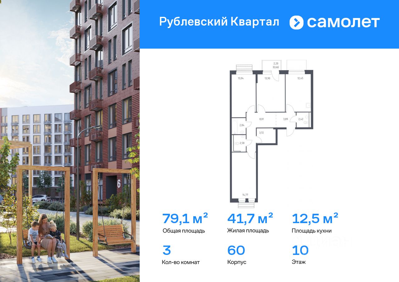 Предлагается 3-комнатная квартира комфорт-класса 79,08 кв.м в корпусе 60 на 10 этаже, в ЖК "Рублевский Квартал"