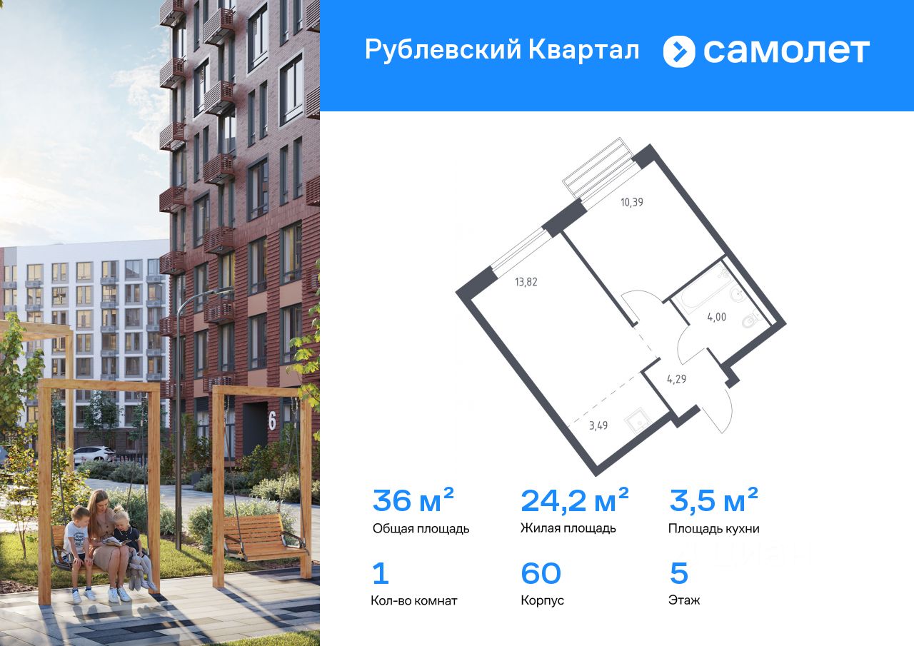 Предлагается 1-комнатная квартира комфорт-класса 35,99 кв.м в корпусе 60 на 5 этаже, в ЖК "Рублевский Квартал"