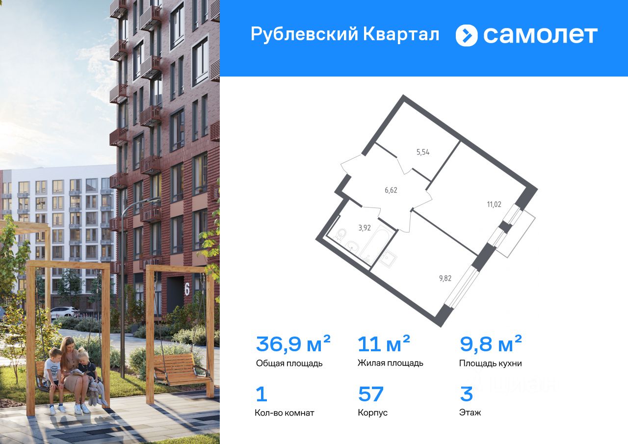 Предлагается 1-комнатная квартира комфорт-класса 36,92 кв.м в корпусе 57 на 3 этаже, в ЖК "Рублевский Квартал"