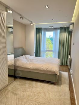 Вторая уютная спальня, со своим кондиционером, новой кроватью, большим шкафом и полками для хранения, окна в пол, дизайнерские шторы, подводка под телевизор.