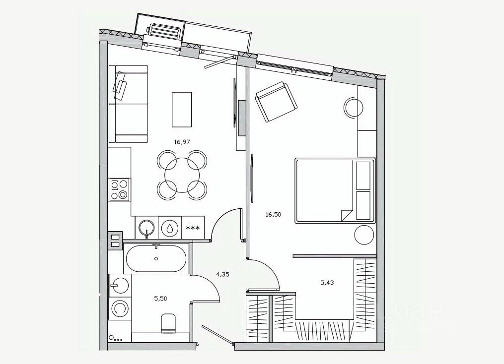 Просторная свободная планировка. Светлая квартира с большими окнами и высотой потолка 3,1 м. Много воздуха и простора для воплощения дизайнерских идей. Квартира без отделки, но возможна доп опция ремонта от застройщика.
