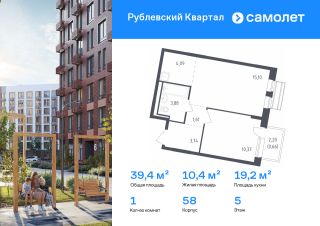 Предлагается 1-комнатная квартира комфорт-класса 39,4 кв.м в корпусе 58 на 5 этаже, в ЖК "Рублевский Квартал"