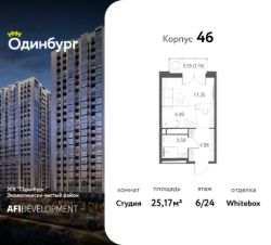 Предлагаем вашему вниманию уютную студию общей площадью 25,17 кв.м на 6 этаже в новой очереди строительства ЖК "Одинбург". Этот обновленный проект от компании AFI Development включает в себя актуальные архитектурные решения и функциональные планировки. Для всех действует предложение от застройщика Назови свою скидку, подробности акции уточняйте у менеджеров отдела продаж.