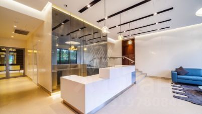Дизайнерская квартира с двумя спальнями в комплексе премиум-класса "Сколково Парк". Квартира площадью 80 м² расположена на 6-м этаже в корпусе 6. Выполнена дизайнерская отделка в неоклассическом стиле с использованием высококачественных материалов: премиальная английская краска Little Green, паркетный пол гармонирует с дубовыми дверьми Union. Электроприводы позволяют регулировать шторы бесшумно — со смартфона или через "Алису". Панорамные окна Schuco открывают вид в уютный двор.