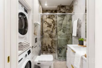 В квартире есть вся необходимая мебель, а кухня с итальянской мебелью оснащена техникой Bosch. Санузлы оборудованы немецкой сантехникой, включая душевую нишу с потолочным душем Hansgrohe, полотенцесушитель, стиральную и сушильную машины Bosch. Из современных систем установлены: умный дом, подогрев полов, вентиляция Mitsubishi, защита от протечек, регулируемое отопление и круглосуточная подача горячей воды.