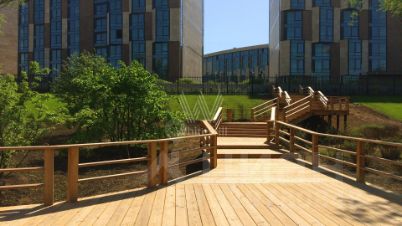 Главное о локации. Жизнь у большого парка и воды. От домов начинаются прогулочные петли к Мещерскому парку с хвойными аллеями, пляжем у пруда, беговыми и веломаршрутами. По настилу из лиственницы можно выйти к набережной реки Сетунь и пройти вдоль воды тихим лесным коридором. Рядом гольф-клуб Сколково и кампус инновационного центра со своей событийной повесткой, музеями и кафе. Район заряжает активностью: по утрам здесь бегут среди сосен, днём выбирают маршруты по лесу и воде, вечером возвращаются в подсвеченные дворы и сад квартала.