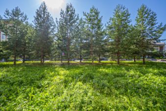 Изюминка этой квартиры - зеленый участок, на котором можно посадить деревья, кустарники, сделать приватную зону для отдыха взрослых и детей.
