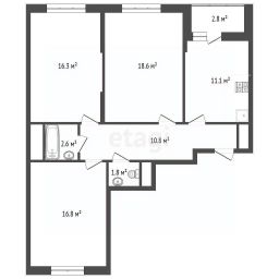 Просторная трёхкомнатная квартира свободной планировки в ЖK "Сколковский", без отделки.