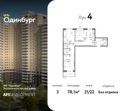 Предлагаем вашему вниманию уютную 3-комнатную квартиру общей площадью 78,1 кв.м на 21 этаже в новой очереди строительства ЖК "Одинбург". Этот обновленный проект от компании AFI Development включает в себя актуальные архитектурные решения и функциональные планировки. Для всех действует предложение от застройщика Назови свою скидку, подробности акции уточняйте у менеджеров отдела продаж.