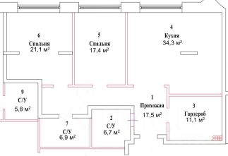 Квартира состоит из кухни - гостиной, 2 спален, 2 санузлов, просторной гардеробной комнаты с отделением для кабинета (рабочей зоны) или мастерской.