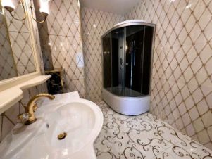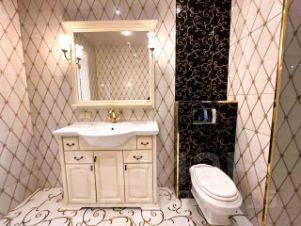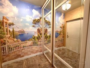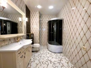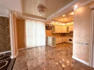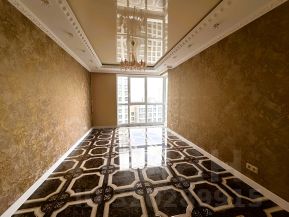 Отделочные премиальные материалы, венецианская штукатурка, авторские обои Валентин Юдашкин, бесшовная итальянская фреска; двухуровневые потолки с разным сценарием освещения, хрустальные светильники, премиальный декорированный керамогранит с латунными вставками, теплые полы по всему периметру, внутрипольные конвекторы, сплит система ARTCOOL.