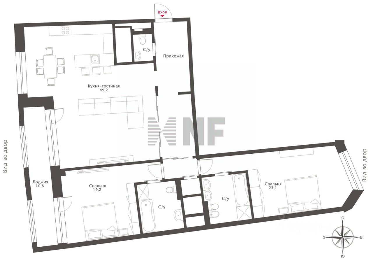 Функциональная планировка включает в себя: просторную гостиную с зоной кухни и столовой, мастер-спальню с гардеробной и с/у, детскую с с/у, холл, гостевой с/у и прачечную. Из основной спальни и гостиной предусмотрен выход на просторную теплую лоджию.