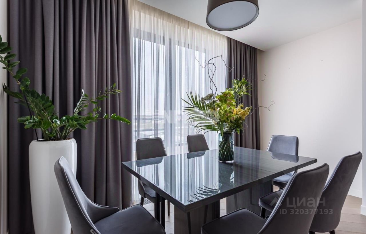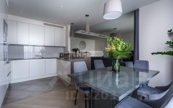 Выполнена отделка из материалов премиум-класса по авторскому дизайн-проекту Полины Питсан: стены покрыты водоэмульсионной краской, на полу инженерная доска высшей категории из бука, итальянские межкомнатные двери изготовлены по индивидуальному заказу с фурнитурой от AGB из массива дуба. Предусмотрены встроенные конвекторы отопления с регуляторами температуры, бесшумная централизованная система приточно-вытяжной вентиляции от Mitsubishi Electric.