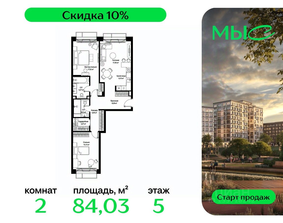 ЖК "МЫС" - идеальное место для тех, кто хочет объединить городскую жизнь с близостью к природе. Здесь каждый найдет формат жилья на свой вкус: многоквартирные и клубные дома для больших семей, ценящих приватность и простор, частные дома и таунхаусы для истинных фанатов загородной жизни, которые не готовы отказываться от городского комфорта.