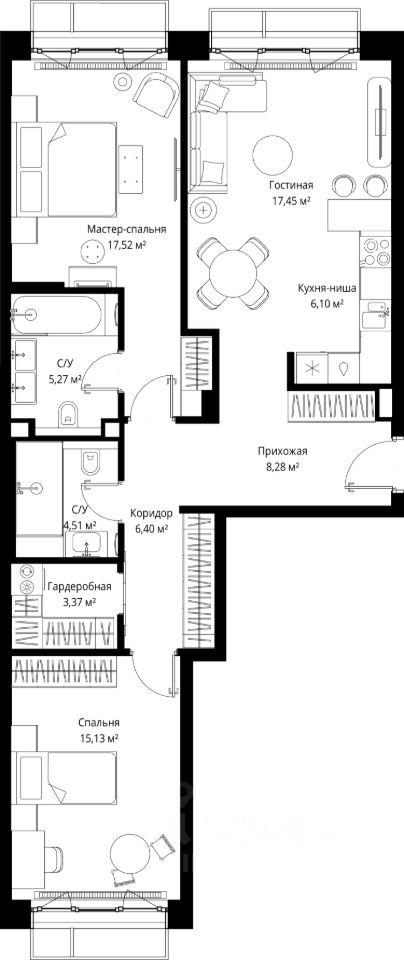 Продаётся 2-комнатная квартира общей площадью 84.03 м² без отделки в премиальном жилом комплексе "МЫС" на 5-м этаже 12 этажного дома. Квартира расположена в корпусе "Волга".