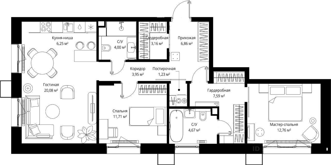 Продаётся 2-комнатная квартира общей площадью 82.26 м² без отделки в премиальном жилом комплексе "МЫС" на 5-м этаже 12 этажного дома. Квартира расположена в корпусе "Волга".