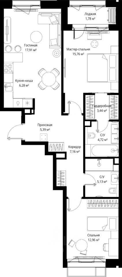 Продаётся 2-комнатная квартира общей площадью 80.53 м² без отделки в премиальном жилом комплексе "МЫС" на 4-м этаже 12 этажного дома. Квартира расположена в корпусе "Волга".