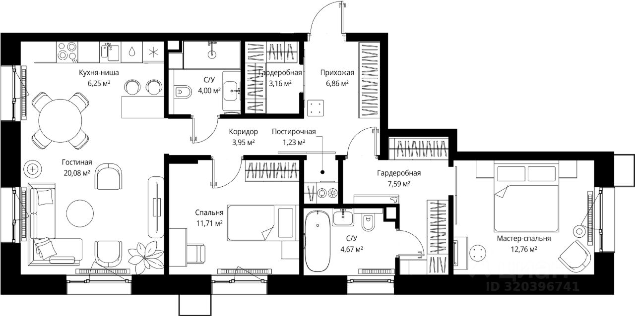 Продаётся 2-комнатная квартира общей площадью 82.26 м² без отделки в премиальном жилом комплексе "МЫС" на 3-м этаже 12 этажного дома. Квартира расположена в корпусе "Волга".