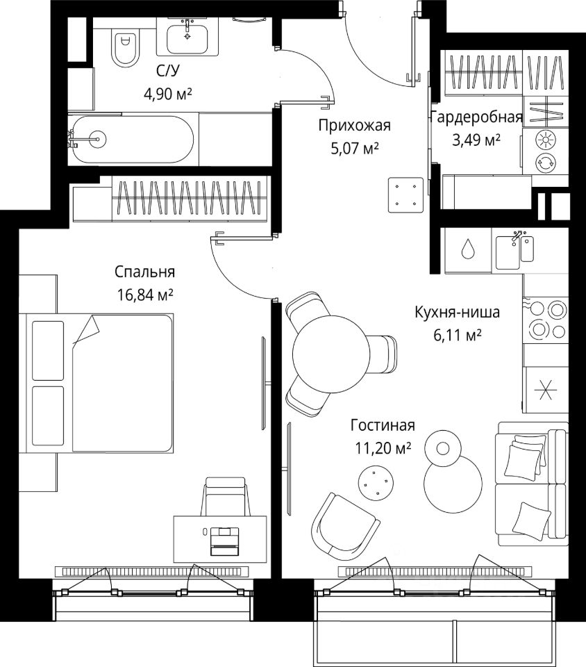 Продаётся 1-комнатная квартира общей площадью 47.61 м² без отделки в премиальном жилом комплексе "МЫС" на 8-м этаже 12 этажного дома. Квартира расположена в корпусе "Волга".