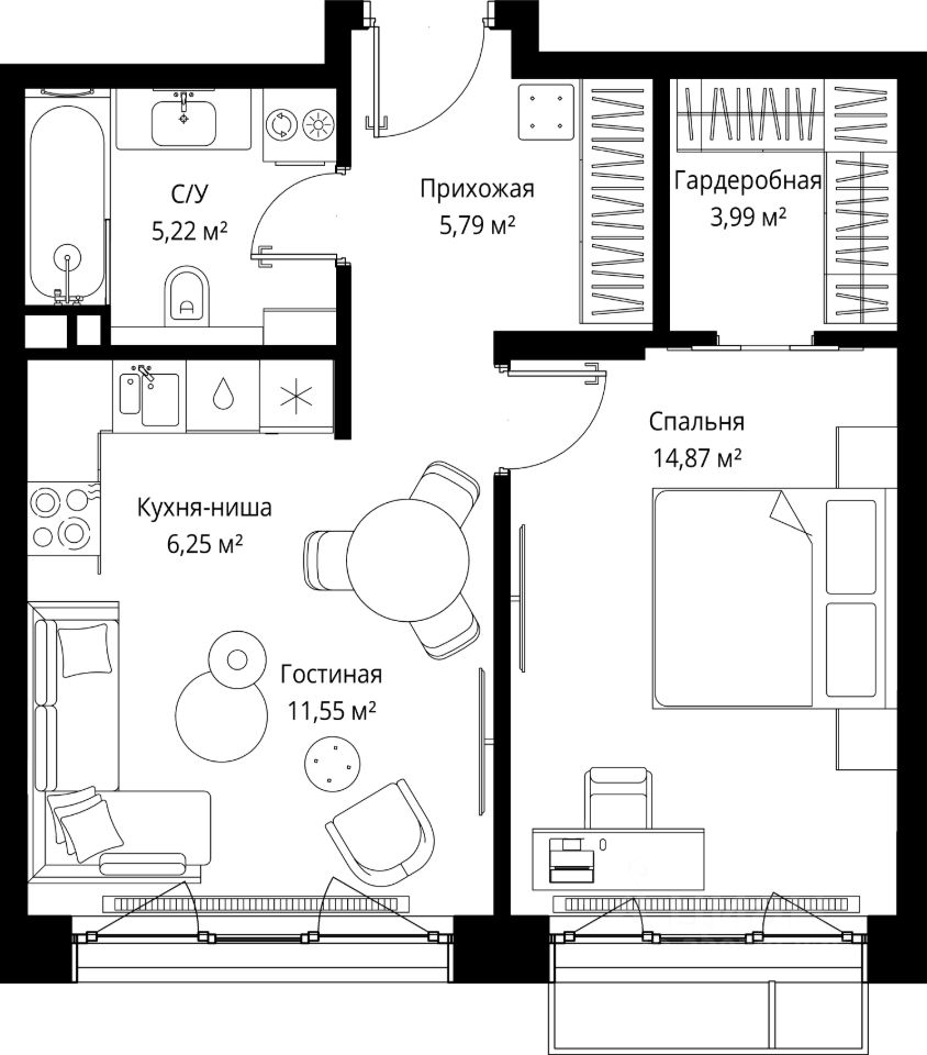 Продаётся 1-комнатная квартира общей площадью 47.67 м² без отделки в премиальном жилом комплексе "МЫС" на 2-м этаже 12 этажного дома. Квартира расположена в корпусе "Волга".