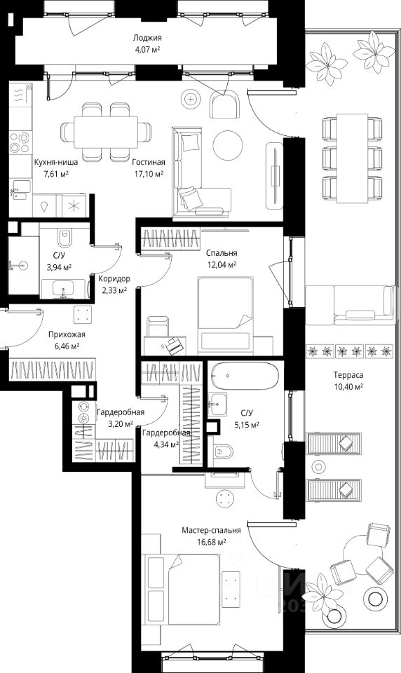 Продаётся 2-комнатная квартира общей площадью 93.32 м² без отделки в премиальном жилом комплексе "МЫС" на 2-м этаже 12 этажного дома. Квартира расположена в корпусе "Сибирь".