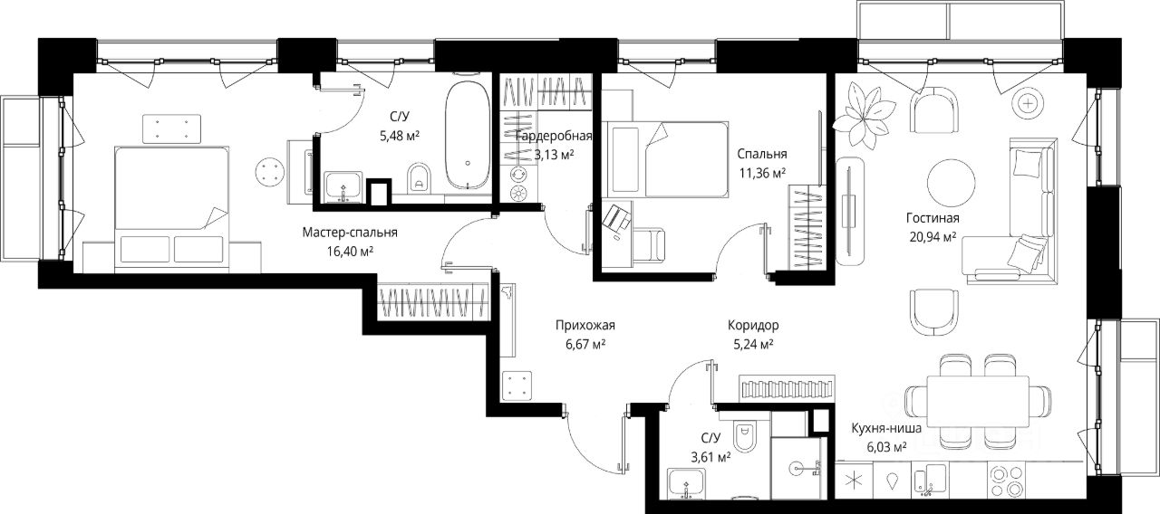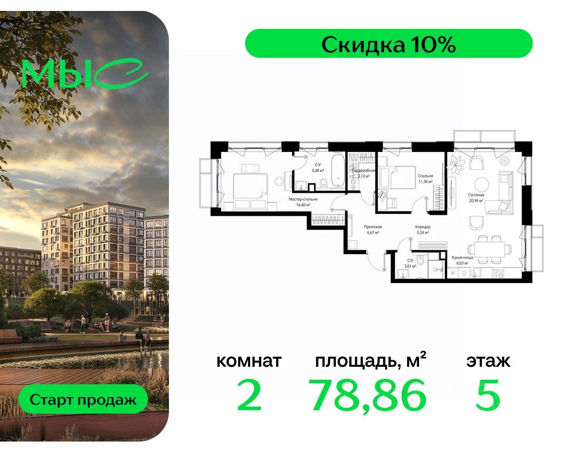 Продаётся 2-комнатная квартира общей площадью 78.86 м² без отделки в премиальном жилом комплексе "МЫС" на 5-м этаже 12 этажного дома. Квартира расположена в корпусе "Сибирь".